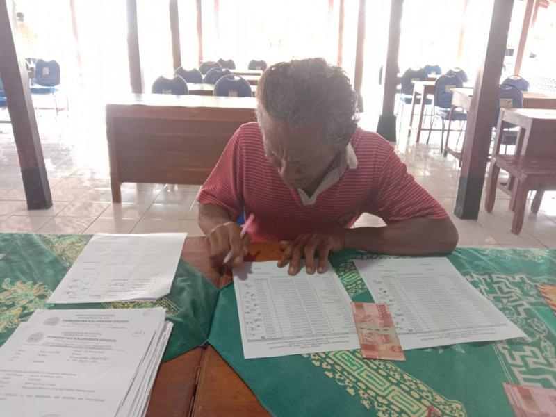 Sebanyak 23 Keluarga Penerima Manfaat (KPM) dihadirkan guna menerima bantuan tunai nominal Rp. 300.000,-. Dalam pengantarnya, Kamituwa Grogol selaku pelaksana teknis kegiatan didampingi Kaur Pangripto menyampaikan kepada seluruh KPM bahwa BLT DD bulan Oktober disalurkan hari ini namun dengan cacatan bagi KPM yang nantinya mendapatkan bantuan BLTS Kesra dari Kemensos senilai Rp. 900.000,- untuk bulan Oktober, November dan Desember diharuskan nantinya untuk mengembalikan uang tunai BLT DD bulan Oktober yang sudah diterimakan untuk kemudian akan dialihkan kepada KPM baru. “Penerima bansos tindak boleh dobel, sehingga apabila dalam satu KK nantinya mendapatkan BLTS Kesra maka KPM harus mengembalikan BLT DD dan akan dialihkan”. Penjelasan tersebut dapat diterima dan menjadi kesepakatan bersama.