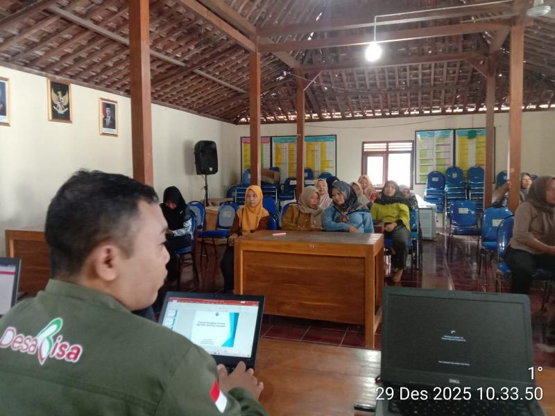 Narasumber dari Pendamping Desa menyampaikan progress update data eHDW yang baru mencapai skor 63,09% pada akhir September 2025, skor ini sudah naik 0,71 dari sebelumnya namun harus diteruskan dengan entri data pada Triwulan Keempat serta entri fasilitasi desa terkait anggaran dan realisasi kegiatan khusus stunting. Atas bimbingan dan arahan pendamping entri data eHDW dapat dilaksanakan hingga finish dengan skor akhir 72,47%.